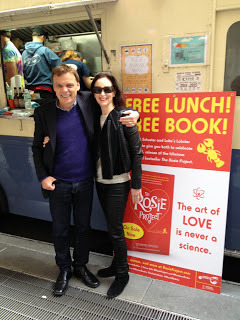 Would I want the chance to do the same? You bet, but I have been sobered a little. Even for “successful” authors the glam bit is light on. You enjoy every bit you can because it may never come again…live the dream, and even if it’s at a lesser level than overseas launches, maybe that one person who reads your book that it makes a difference for, is all that is needed. Some of the emails to my husband have given him just that. So I’ll wish for this, and if any of the rest comes…well I’ll take pseudoephedrine, a coffee machine and stilnox. And pray I end up in the right place at the right time and talk about the right thing! PS See photo. You do get to hug random people but in this case a good friend! I wonder if they gave him a free lobster roll....?
