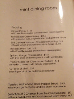 What's even more amazing about this town is how well we have eaten; great food in Auckland at Kazuya (Japanese fusion) but here in local Nelson Mint last night was eeeexcellent (can't quite get the waitresses accent, but Graeme is originally a Kiwi so he's helping me practice); they don't have desserts, they have pudding. This doesn't help me delude myself about it being low calorie. Tonight at The Boat Shed, meant to be good and a view to boast about as well.