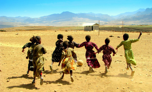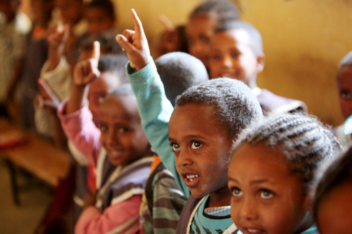 Even in the absence of desks and books, children in Ethiopia are eager to learn. In 2011, imagine1day built a fully furnished school for these children who were previously sitting on stones in makeshift classrooms in the northern Tigray region. Photo: imagine1day