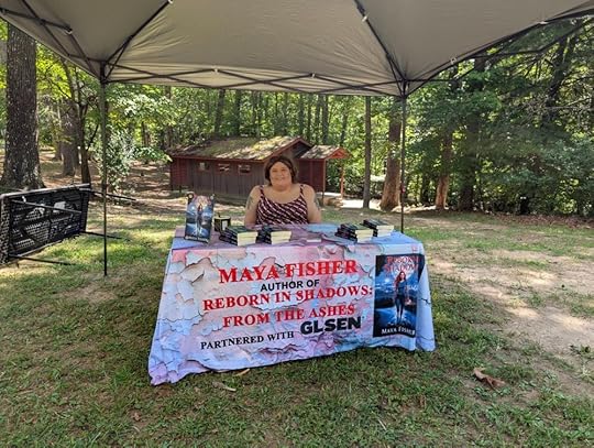 I came with a goal: to give away 50 signed paperback copies of my debut novel, Reborn in Shadows: From the Ashes. It’s a romantic thriller that follows a trans woman and amputee trying to rebuild her life in a fictional Appalachian town not unlike my own.