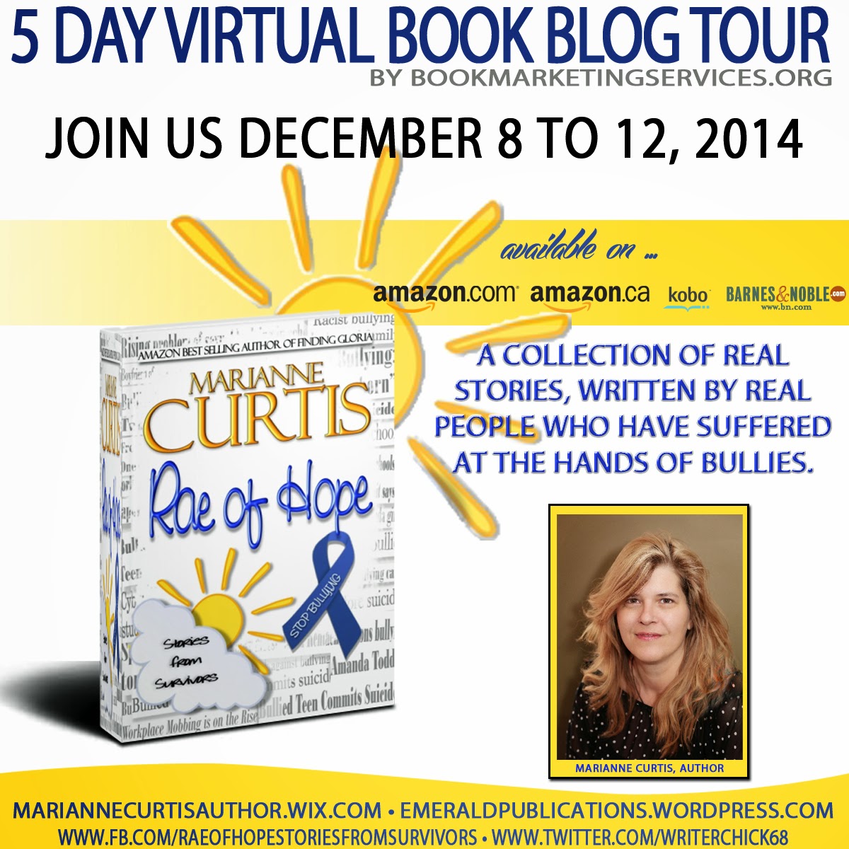 Marianne Curtis, Journalist and AuthorRAE OF HOPE: STORIES FROM SURVIVORSBest selling author Marianne Curtis has just released her newest book, RAE OF HOPE: STORIES FROM SURVIVORS – real stories from victims of bullies. Curtis herself is a survivor of childhood abuse, bullying, and sexual assault. In addition to writing books, she has been a journalist for the past 20 years in Manitoba, Canada.