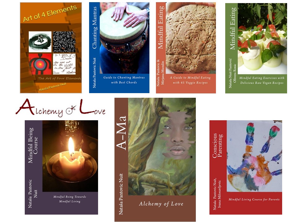 Nataša Nuit Pantović: A team of spiritual researchers worked hard for 5 years to give birth to a serial: Alchemy of Love Mindfulness Training, non-fiction and fiction books that explore the alchemy of soul, and our inner quest to reach our highest potential. The serial includes 2 books on Mindful Eating (exploration of a vegetarian and vegan life-style), 2 courses on Mindful Living (Mindful Being and Conscious Parenting), 12 modules of a personal development journey that inspire creative thinking with hundreds of transformation tools, 2 spiritual poetry books (Art of 4 Elements and Tree of Life) and a Spiritual Fiction Novel set in Macau at the Time of Enlightenment (17th century) called: Ama Alchemy of Love.