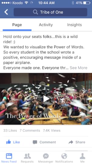 Part One. Every student in the school wrote a positive and encouraging message on a piece of paper, and then made a paper airplane with their message hidden inside. Everyone made one. Everyone brought one. Everyone threw one. Everyone got one. All the classes had conversations about how our words don’t always go where we intend, but they always have power. Sometimes our words encourage those around us, and sometimes they hurt.