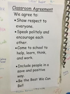When I walked into their classroom I saw a poster the kids had written up at the beginning of the year. Their teacher described it as a social contract that the entire class agreed to and signed.