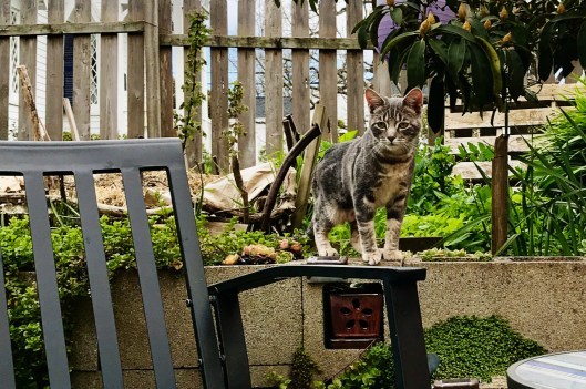 And it turns out, she does know her name, and she does come when called, because there, wandering out of the depths of the garden, is Explorer Girl, saying, “Who, me? Were you worried about little old me? But I’m just out for a stroll.”