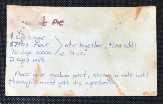 I did not consider three challenges before I began: 1) reading other people’s handwriting; 2) twenty-year-old, well-loved recipes suffering from inevitable decay (water stains, fading, etc.); and 3) how often recipes that we write for ourselves lack details.