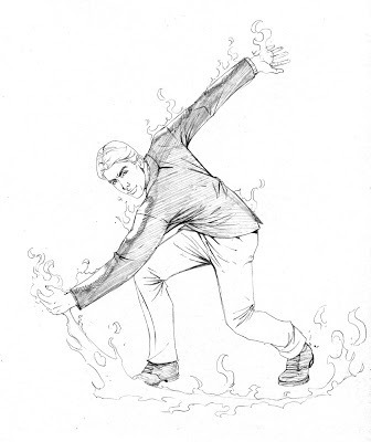 A quick sketch of the Hindu god Agni from PANTHEONS! For those of you who often go bowling you can tell from Agni's expression that he's going for a Hambone! Point of fact, he's the best bowler of all the gods. Who won the fight between him and the Celtic god Lugh? Find out in PANTHEONS!