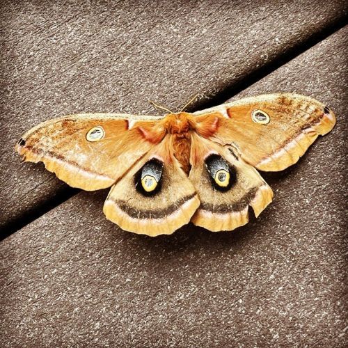This giant silk moth has been hanging out all day. I normally hate moths, but this is beautiful. (Polyphemus Moth) #insectsofinstagram #iseeyou #mothsofinstagram #polyphemusmoth (at Florence Oregon Coast)