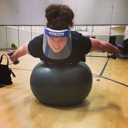 Back at the gym and wearing my clearly labeled face shield.