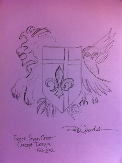 This is the concept drawing for the French Coven Crest. I quickly sketched it out for my graphic artist, Kyle Walker. We will see what he does with it. He did a great job with my concept for the Slayer tattoo. Can't wait!