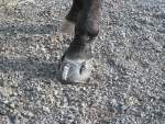 River also received doses of bute for the next couple of days, until he stopped limping. We soaked and poulticed for three more days after that, then I no longer needed to soak his hoof, and I could simply infuse gauze with betadine and stuff it into the ever-smaller hole (then duct tape, then Easy Boot) for about two weeks. The treatment was time-consuming and I had to be vigilant about not getting kicked. River is not a “kicky” fellow but he grew tired of having his hoof handled. My total vet bill–including the emergency visit–was nearly $600.
