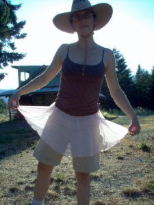 That July, Mike had a freelance video production gig (thank goodness!) that required travel. While he was out of town, I drove to the Wallowa Mountains with my friend Laura to visit my other friend, Jon. We had a great time—just what I needed—and I dreaded returning to reality. On our way out of town, Laura and stumbled upon a big rummage sale being held in a parking lot. I found a child’s pink tulle tutu for 25 cents.