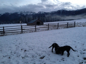 Part of the difference is that I am forced, by way of needing to let the puppies out to pee, to be up at 4-or-so every morning. I love sleep too much to say I’m happy about this, but I will go so far as to admit that I’m grateful for the opportunity to hear Great Horned owls talking from tree to tree around our yard; see elk crunch across the area just outside the fence; hear coyotes working themselves into a shrill frenzy out past the barn.