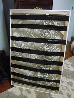 Once you’re all done, use the super scientific method of securing the back with pieces of duct tape. Surprisingly, they won’t show through the front, even with black duct tape.