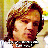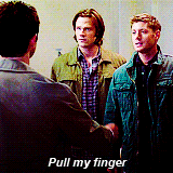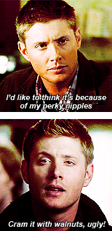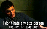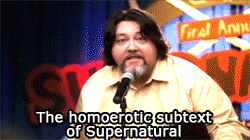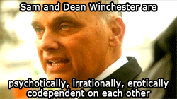 Because every time I see someone on tumblr claim that the writers, the actors, and/or the network is homophobic simply because their ship isn’t canon, I want to hunt them down and punch them as HARD as I can. Supernatural has been nothing but supportive from the very beginning, and it pushes the envelope much farther than most shows. It was not originally nor was it ever intended to target a gay audience; it’s aimed at your average sci-fi [with a high percentage of female] demographic. So, with that in mind, the amount of support the gay community has received through this beautiful show since 2005 is amazing. And this gif set doesn’t even include all the references to the main characters being gay the show makes itself [I already made that gif set]. So, guys, kindly blow it out your ass. Nothing but love coming from this show, it deserves it right back.