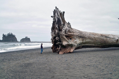 Giant driftwood on the beach at La Push,...