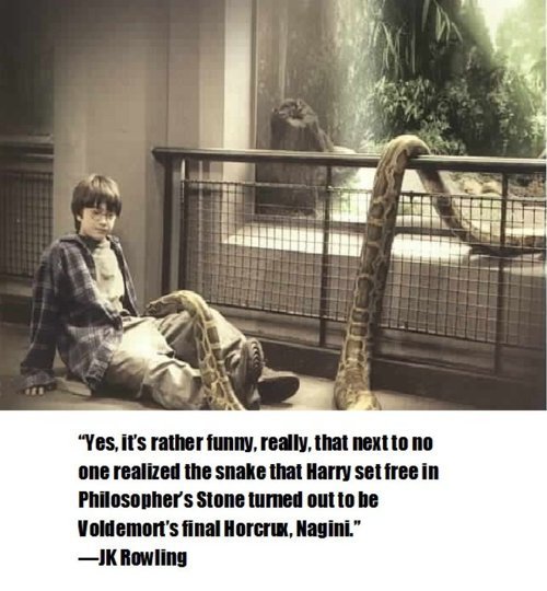 awkward moment when you realize the snake from the first book was a male while Nagini was a female.. making this “quote” from JK Rowling a fake