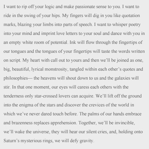 “Then he put his metaphor in my allegory and we made sweet, sweet subtext all night long.”