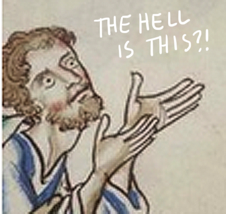 Bibliothèque nationale de France, Français 403, detail of f. 23v (worshipping the Beast). Bible (Revelation). Salisbury, c. 1250.