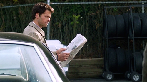 #omg he looks so judgmental #with his newspaper and his face #gonna pretend this is some point in the future when castiel has lost all or most of his powers #or maybe just a human au idk #they’re driving somewhere and they’ve pulled over at a gas station because they’re lost #dean doesn’t want to ask for directions because he’s been driving half his life he knows these roads like the back of his hand okay cas #castiel is disapproving of dean’s life choices and also trying his best to be passive-aggressively unhelpful (via electricskeptic)