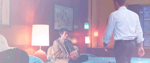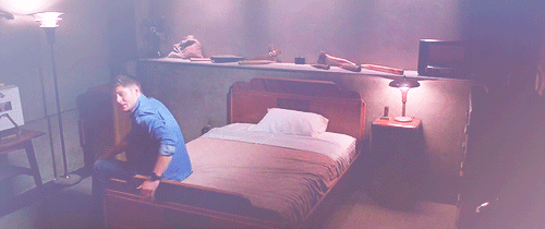 sitting alone in the dim lighting on his bed that remembers him, Dean finishing the episode with “Where the hell are you?” and looking around in hope he might see Cas… (x)