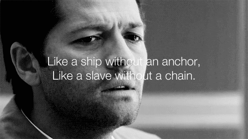“You have nothing to fear, nothing left to lose. Nothing else will be asked of you. You are a warrior, a messenger, beloved and lover. Everything you have fought for is yours now. Castiel is yours. Sam is clean and whole and Bobby has many of your human years left. Castiel will be by your side for the rest of your life.” She paused for a moment before continuing, “I will need to call him home, but don’t worry. He will always come back to you. He is your angel. You are his human.” She quirked her mouth and seemed to hold back laughter.
