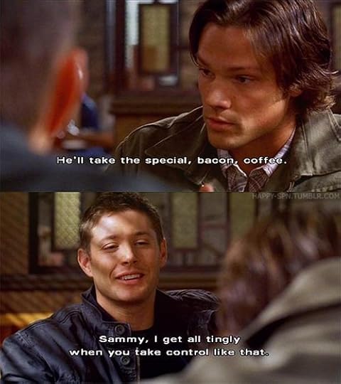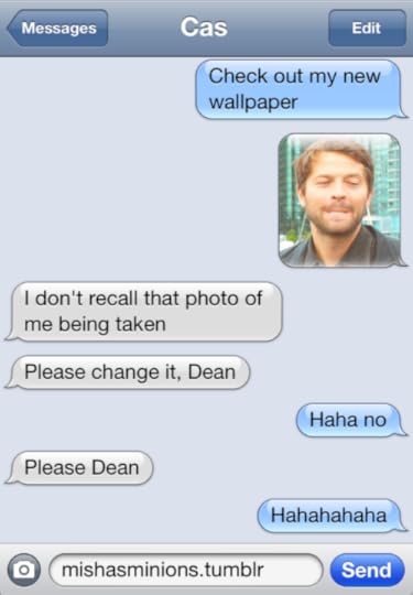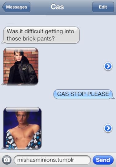 I never get tired of the various reactions people have when Castiel just randomly pops up beside them.