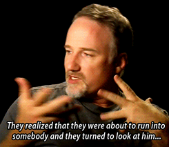 comebacktomine: David Fincher describing women's reactions toward Brad Pitt in public. Chill people, the guy has toilet paper stuck to his ass like anyone else… well not me, but yeah.