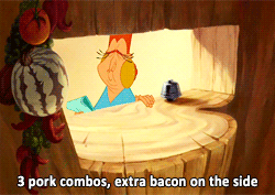 Then in the fourth, he’s like - “Oh my God, the cook is gone and she’s got all these orders. If somebody doesn’t cook that up people are going to get upset! They’ll take it out on this poor woman who’s been on her feet all day and doesn’t deserve their wrath! And…oh my God…PEOPLE WILL BE HUNGRY!”