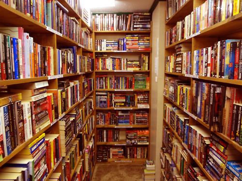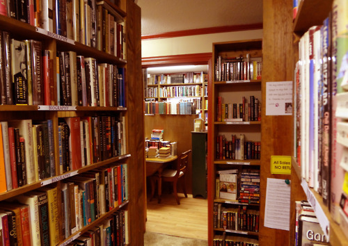 So a few weeks a go a friend of mine told me about this little used book store in town. It is in the smallest house, yet there are books everywhere. Floor to ceiling in every room leaving only room enough for an aisle.
