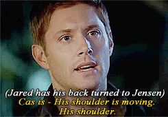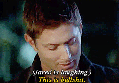 This is my favourite part of the season 7 gag reel. Because Jensen is just so dejected, he’s just “someone, anyone, HELP me with this guy so I can shoot my goddamn scene and go home before it’s daylight again”.