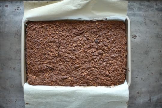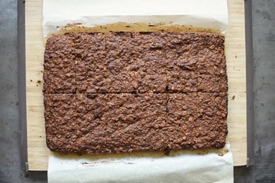 Remove them the oat slab from the oven and let them it cool completely before removing from the pan. Once it is cool, use the overhanging parchment paper to lift the bars slab out of the pan. Slice into 12 equal bars with a serrated knife.