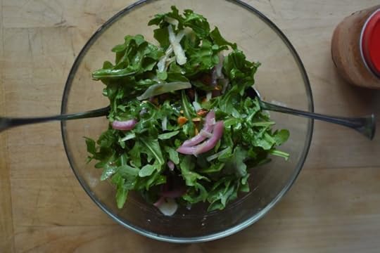 I dressed my salad with a vinaigrette I shook up in a jar of strawberry jam that had a scant half inch left in the bottom (a more organized Jammy Vinaigrette technique can be found in The Food in Jars Kitchen) and called it good.