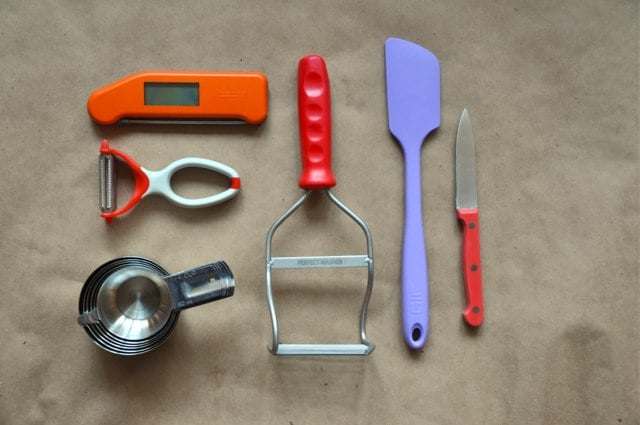 at a Tuesday Morning and it has supplanted all my other mashers. What makes it so awesome is that the tines are bladed. They’re not sharp, but they have just enough edge to make it perfect for breaking down cooking fruit. It’s a fantastic tool.A good, fully encased silicone spatula. The one pictured above is from GIR and is quite nice. However, it also costs $22.50, which is more than most people want to spend on a spatula (disclosure! this one was sent to me for review purposes). For a more sensibly priced version (under six bucks), check out this one from Orka
