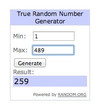 That said, time for our winner. It’s Peggy, #259. She blogs at Pig Logs and ‘taterberries. Congratulations Peggy!