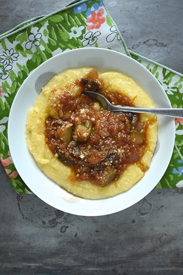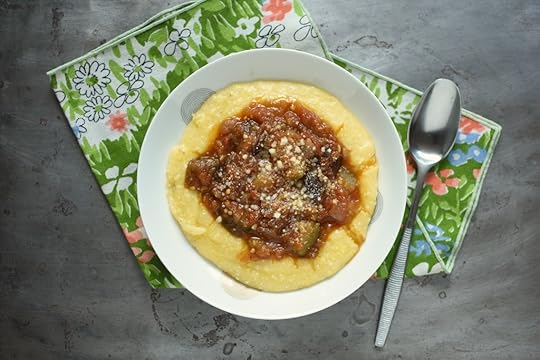 I like to ladle this braise over a puddle of freshly cooked polenta (simmer 1 part coarse cornmeal with 4 parts salted water, until creamy and quite thick). If I don’t have the time to cook polenta, I’ll toss it with cooked penne or gemelli. Topped with a pinch of grated parmesan cheese, it makes a lovely late summer meal.