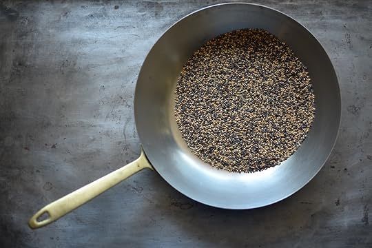 Put the mustard seeds in a dry skillet and toast them for 1 to 2 minutes, just until they start to pop. Transfer them to a plate to cool. Once they're cool, put them in nested resealable bags. Close the bags tightly and crush the seeds using a rolling pin or heavy-based bottle.