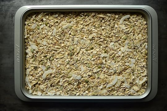 Combine the oats, almonds, sunflower seeds, pumpkin seeds, coconut, and flax meal in a bowl and stir to combine. Transfer the mixture to a large, rimmed baking sheet and toast in the oven for 15 to 20 minutes, until the nuts and seeds smell fragrant.