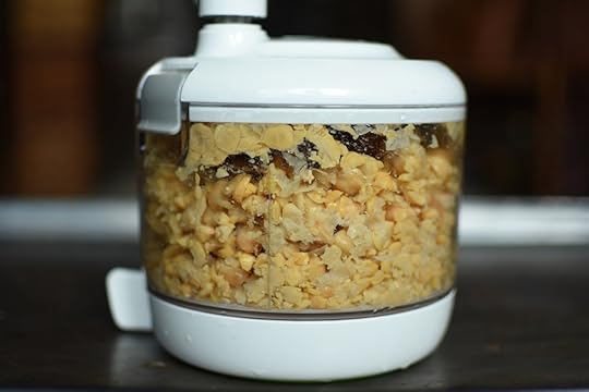 The instructions call for you to rinse the chickpeas, put them in a bowl and mash them with a potato masher. Because I had the One Stop Chop at my disposal, I used it to break them down instead. The container was able to accommodate both cans of chickpeas and broken them down really quickly.