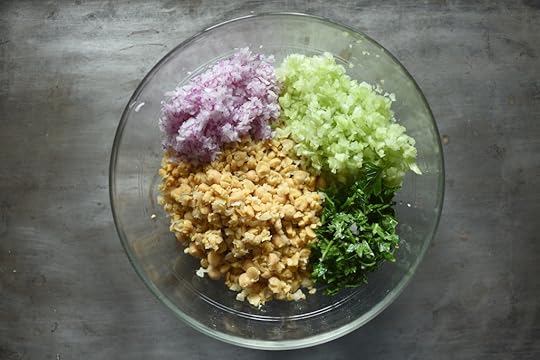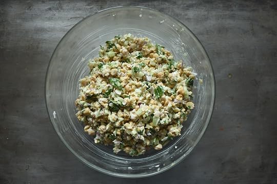 The concept behind this dish is that it’s essentially chicken salad, with smashed chickpeas playing the role of the chicken. As someone who is slowly inching away from animal proteins but loves chicken salad, this recipe spoke to me.