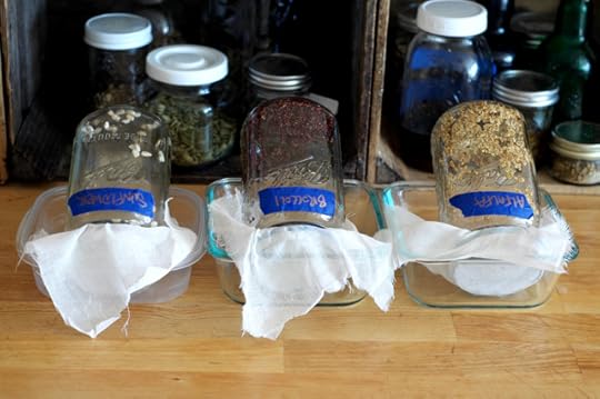 The last piece of equipment I’d recommend is some kind of shallow, walled container, one for each jar, in which you’ll tilt your jars so the seeds won’t sit in standing water.