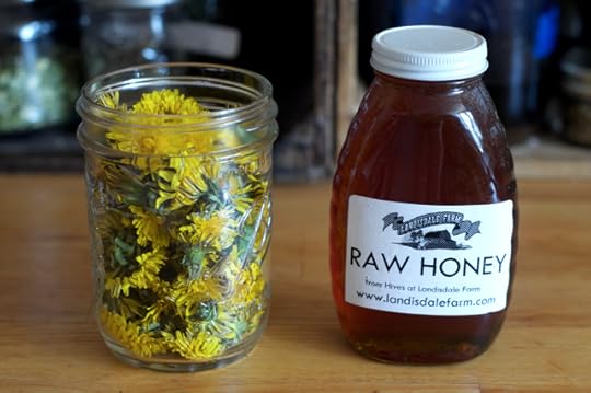 Frances Rose and Acorn of K Is for Kitchen offer lots of different culinary services in our West Philadelphia neighborhood, and one of those is making ethically sourced value-added products. They make all manner of sauces, butters, pestos, and other treats, rotating with the seasons. And they has a little stash of a very special honey, a summertime wildflower honey infused with (wait for it)…dandelion blossoms.