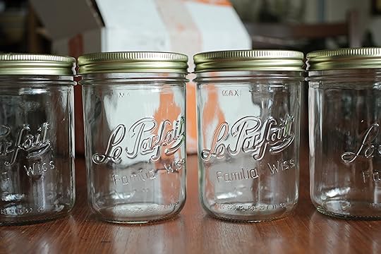 A little over a year ago, when I was traveling up the west coast promoting Naturally Sweet, I stopped in at Down to Earth in Eugene for a demo and book signing. Before we got started, I took a moment to wander through their canning section. They had all the familiar jars and tools, but they also had a massive array of Le Parfait jars.