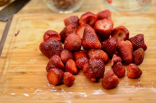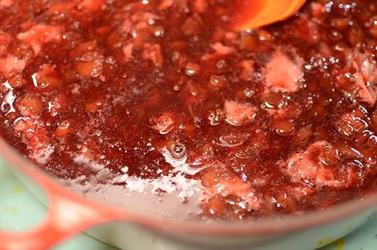 This month, I made a batch of Strawberry Rhubarb Jam using the recipe from Ball Canning. Strawberry season arrived quite late here in the Philadelphia region, and so I’ve been waiting on this recipe for a bit until the berries came in. But they finally arrived and they’ve been glorious. So plump, juicy and red!