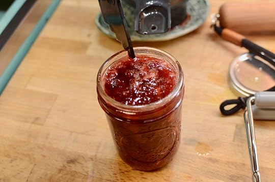 Prior to cooking the jam, you want to prepare your canning pot. Gather six half pint jars. If they’re new, wash them in warm soapy water before proceeding. If they’re jars that have been used before, be sure to give the rims a quick examination, to ensure that there aren’t any chips or cracks that would lead to seal failure.