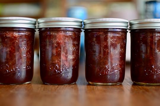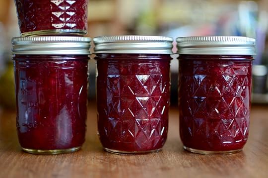 The finished flavor of this jam is cherry, mellowed by plum. I made this one relatively low in sugar so that the fruit would be shine through and I think it worked. This is one that I see using primarily on peanut butter toast. It’s a little too firmly set for yogurt and oatmeal.