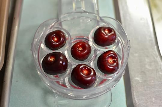 I used my six hole pitter to make quick work of the cherries. I bought this tool a couple of years ago and continue to appreciate the speed at which it allows me to pit a pound or two of cherries. It’s a massive upgrade from my single cherry pitter.