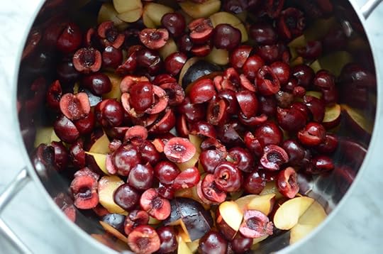 The first thing I’ve made is a small batch combo recipe. I paired one pound of sweet cherries with another pound of plums. I find that you have to be careful with cherries to prevent their flavor from tipping into cough syrup territory. I typically like to combine them with something acidity to temper them and in this case, the plums (along with a healthy squeeze of lemon juice at the end of cooking) do the job nicely.