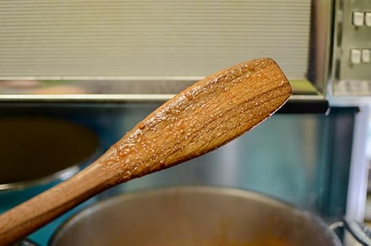 The recipe claims that it should take no more than about an hour to cook down, but I found that it took far longer than that. My batch took just over four hours of gentle boiling (with lots of regular stirring to prevent sticking and burning on the bottom) to reduce to the point that it was thick, no water separated out, and it could mound on a spoon nicely.