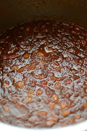 The other issue with this recipe is the yield. The starting ingredients total just over 34 cups. It states that it should make 6-7 half pints. The chutney would need to reduce to 1/4 of its original volume to get even close to 6-7 half pints. So going in I suspected it would make more than that. Boy, did it ever.